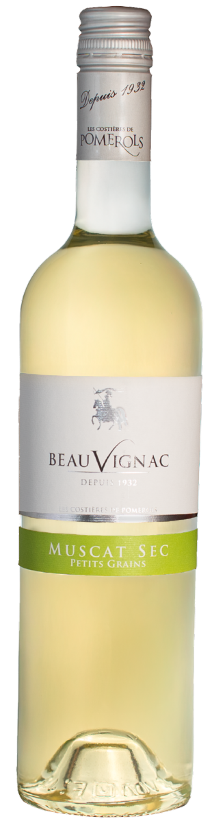 Le conseil du sommelier : ce Muscat sec au profil gustatif équilibré et à la puissante intensité aromatique se marie idéalement dès l'apéritif avec pour exemple des brochettes de crevettes et mangue, des blinis au tarama ou du fromage frais.